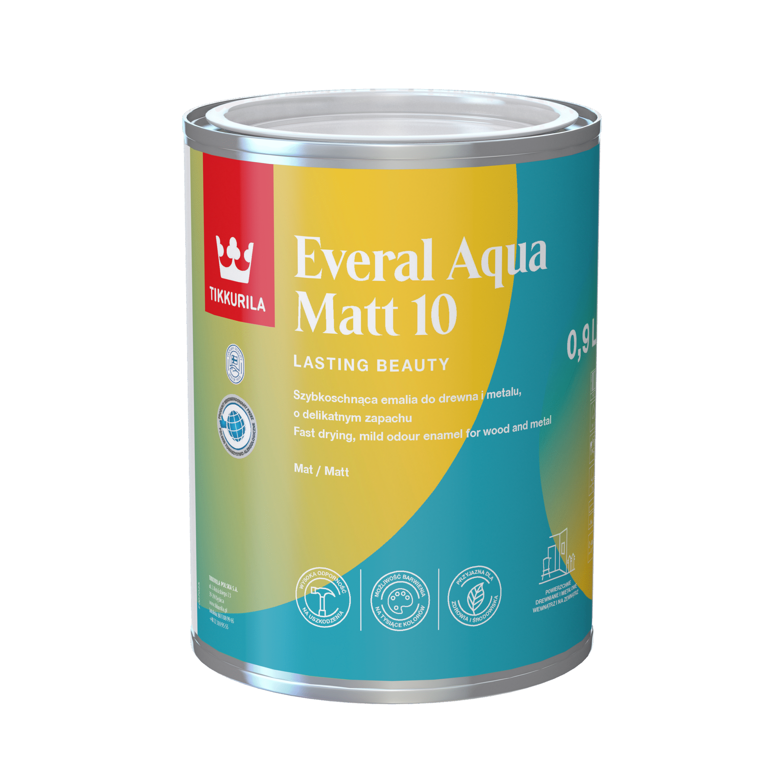 Najnowszej generacji, uniwersalna, szybkoschnąca, matowa emalia akrylowa do drewna i metalu, o delikatnym zapachu. Przeznaczona do stosowania wewnątrz i na…