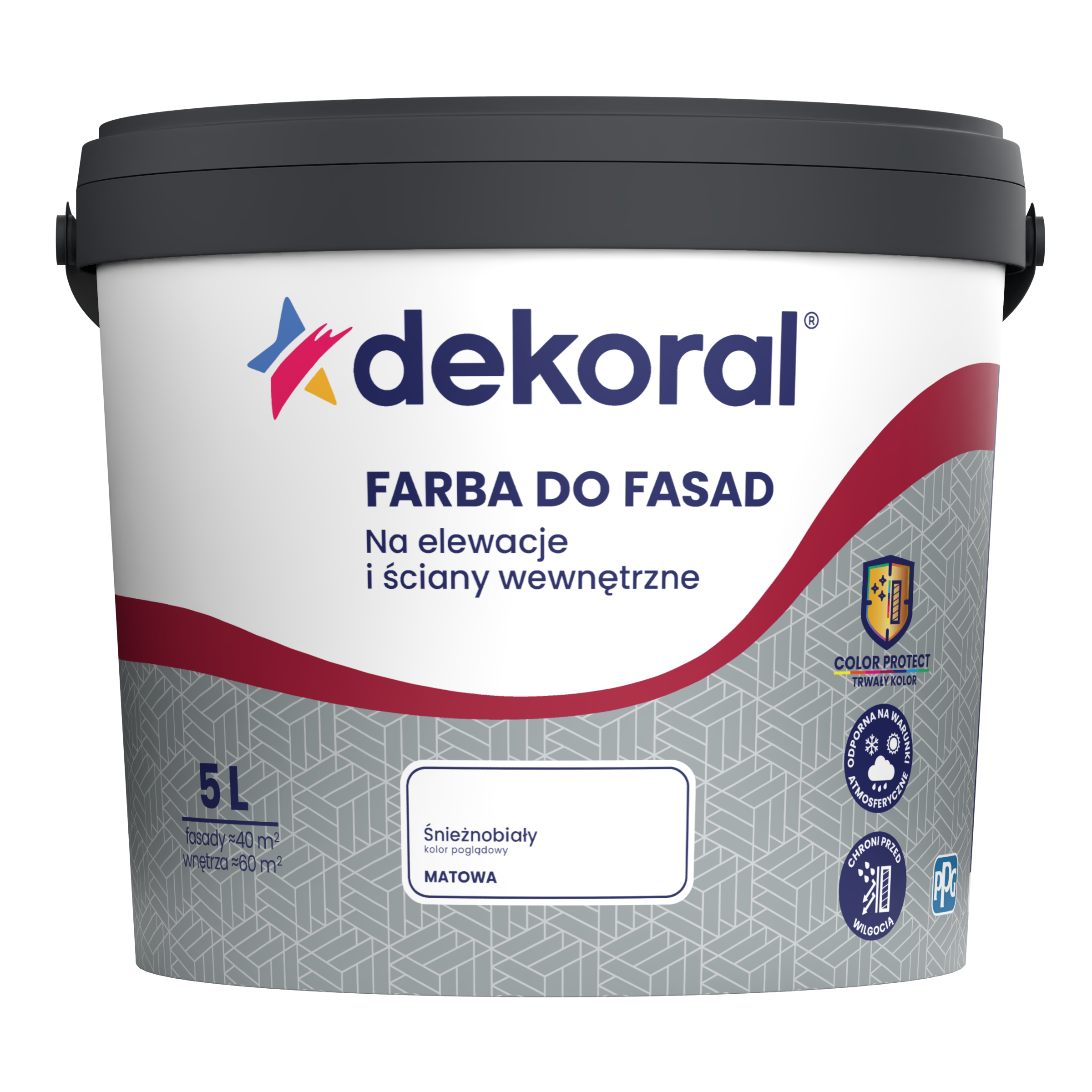Poznaj farbę do fasad przeznaczona do ochronnego i dekoracyjnego malowania elewacji budynków oraz ścian wewnątrz pomieszczeń. Dekoral Farba do Fasad można stosować nawierzchniowo na: tynki cementowe, cementowo-wapienne, gipsowe, płyty gipsowo-kartonowe, szpachlówki, beton, gazobeton, cegłę, kamienie, wyprawy akrylowe i mineralne oraz tapety papierowe z podkładem flizelinowym i z włókna szklanego. Dzięki dodatkowi silikonu farba chroni podłoże przed wilgocią i jest odporna na warunki atmosferyczne. Sprawdź nową paletę barw.