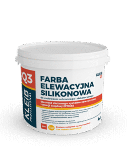 KLEIB Q3 jest elewacyjną farbą silikonową, przeznaczoną głównie do malowania cienkowarstwowych tynków mineralnych i silikonowych w systemach ociepleń budynków KLEIB i KLEIB W.