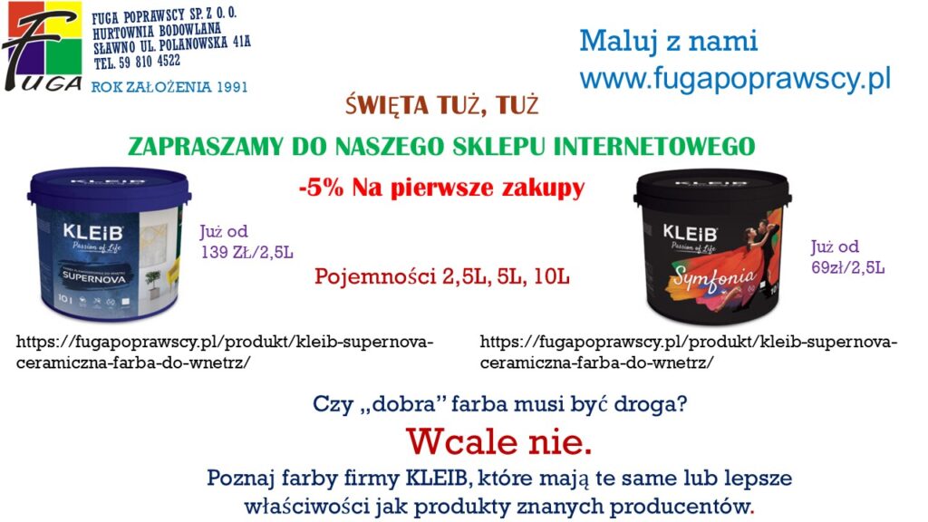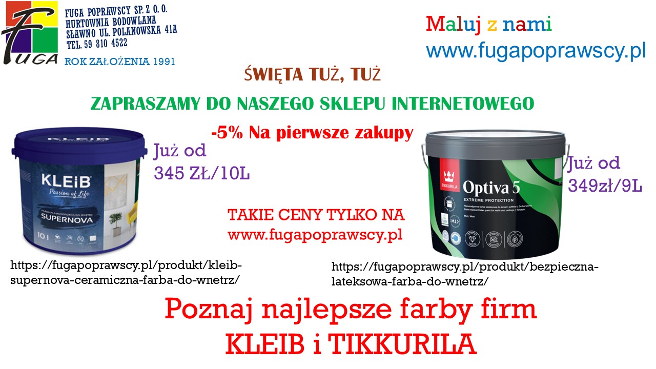 5 % na pierwsze zakupy w sklepie internetowym www.fugapoprawscy.pl z kodem FUGA na promocje. Skorzystaj z tej promocji, aby zaoszczędzić!